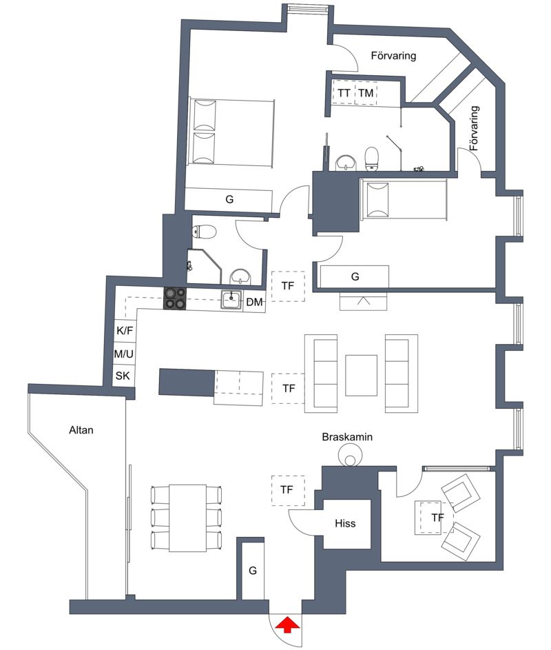 - Hiss direkt in i våningen.
