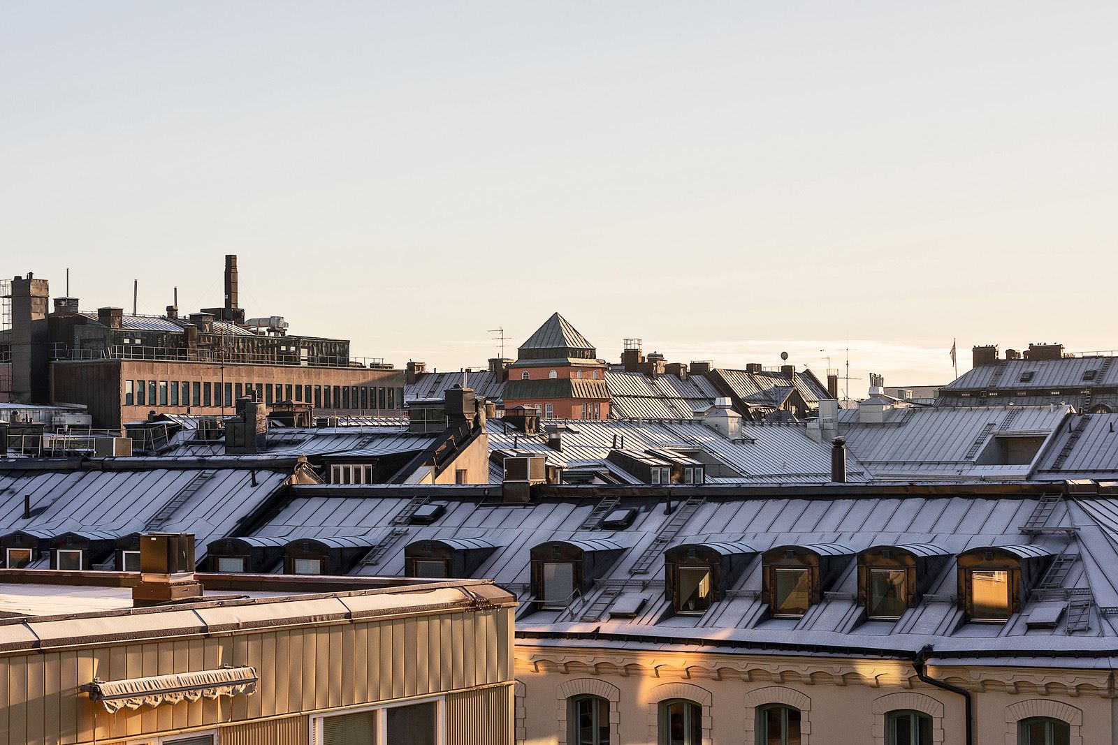 - Garderobsvägg och fönsterkupa mot Fridhemsgatan. Förvaring i kattvinden, inrett med samma golv som övriga våningen.
