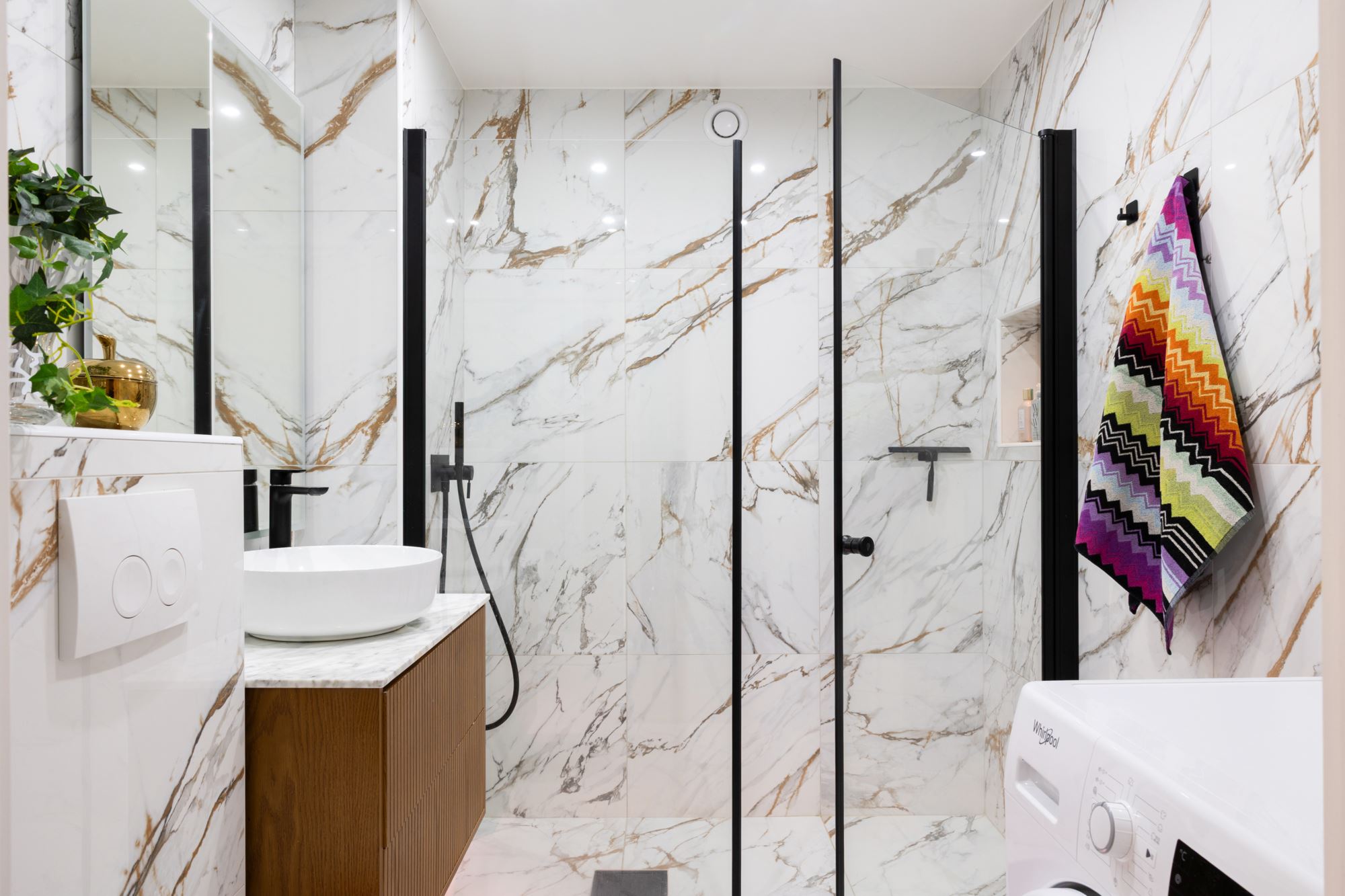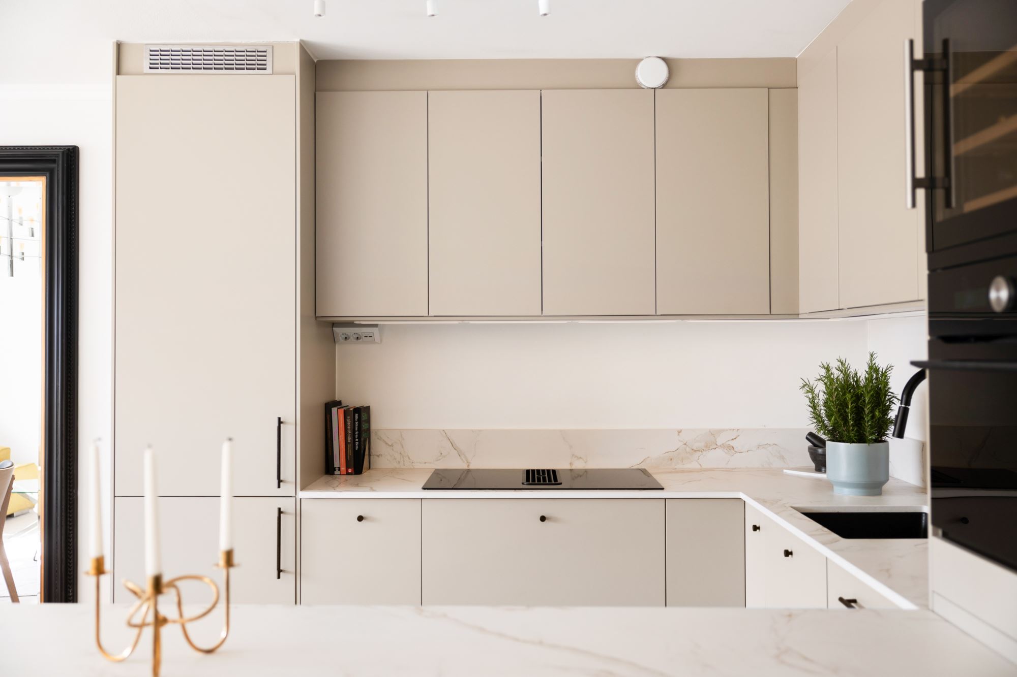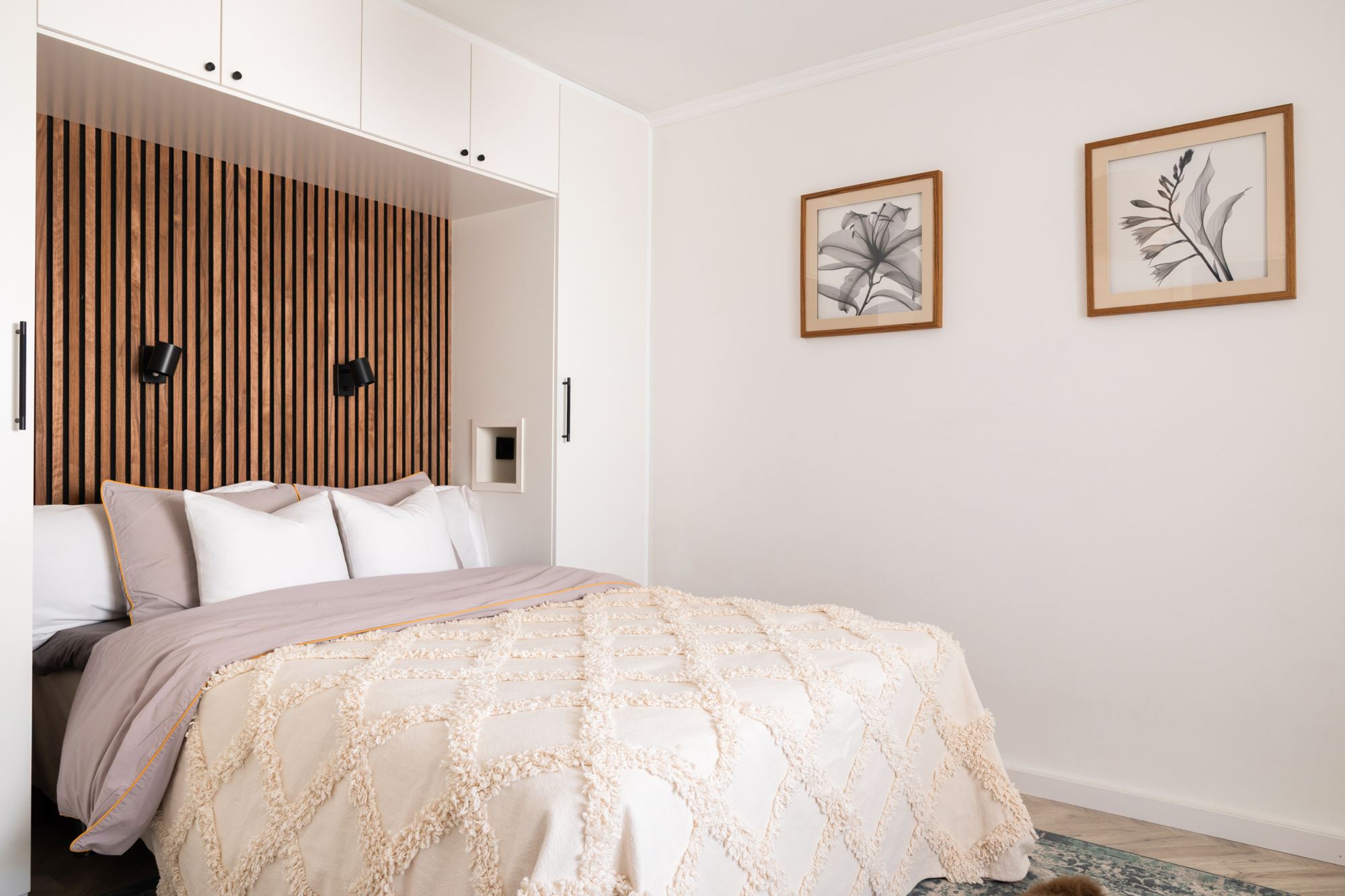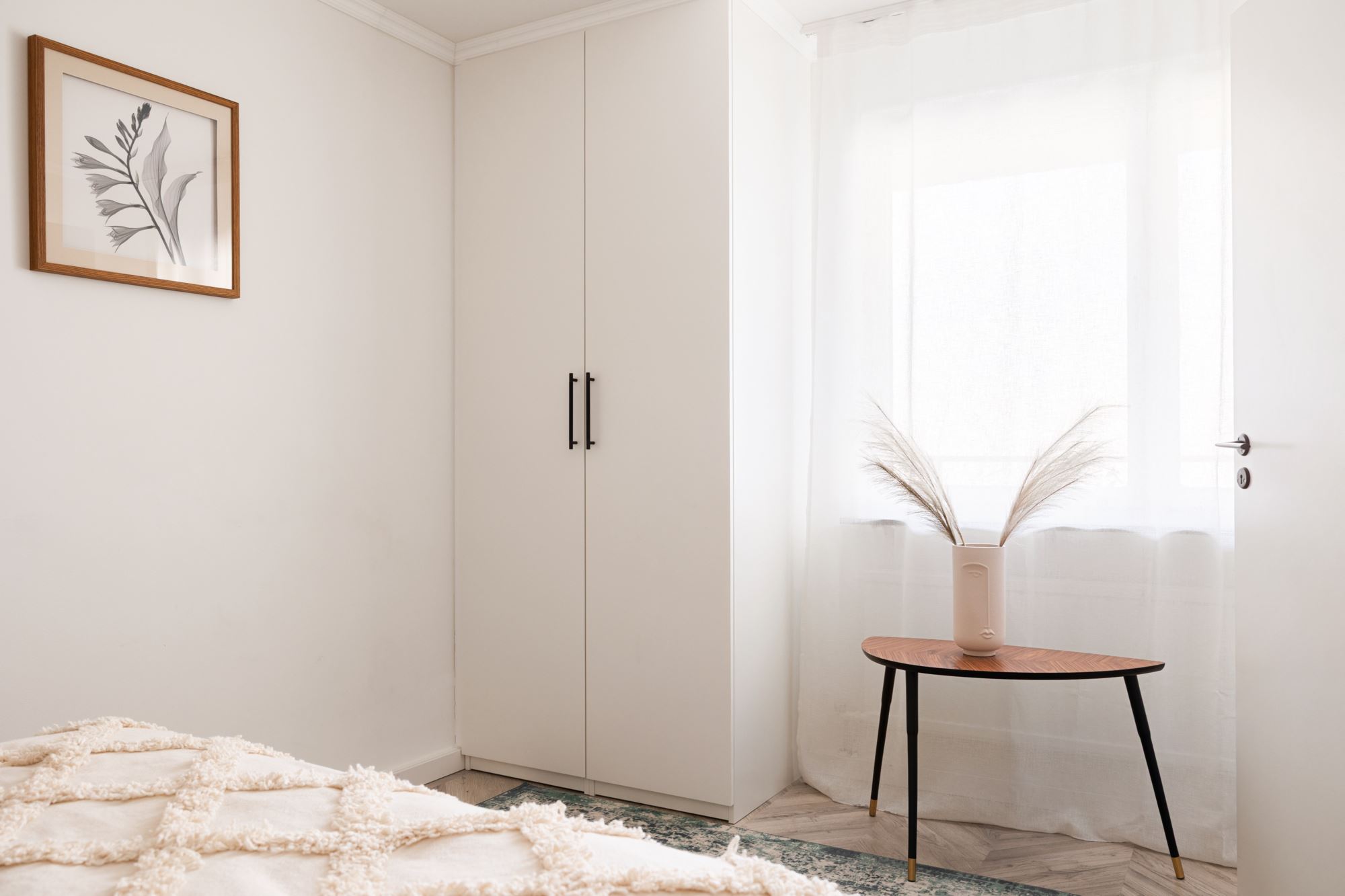 Lägenheten disponeras över ett rymligt vardagsrum med plats för både soffgrupp och matbord – perfekt för såväl avkoppling som sociala tillställningar. Det smakfullt renoverade köket är fullt utrustat med moderna vitvaror, goda arbetsytor och generös förvaring.