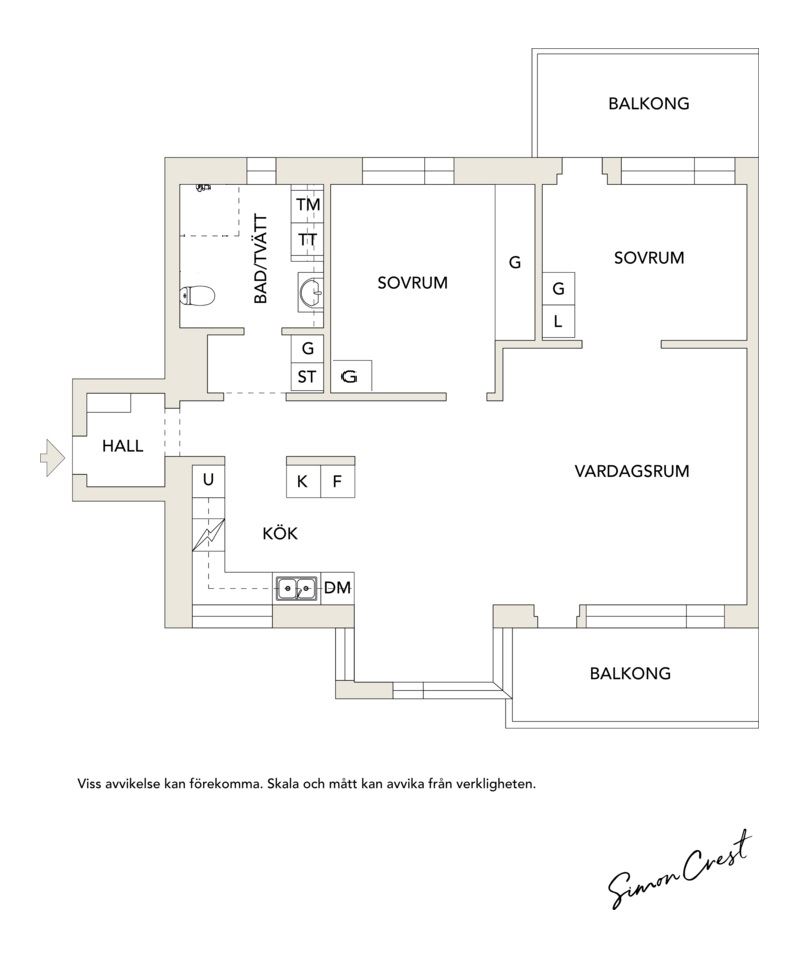 Med en genomtänkt planlösning, två generösa sovrum, gott om förvaring och ett badrum med tvättmöjligheter erbjuder bostaden ett bekvämt och harmoniskt boende – perfekt för både par, den lilla familjen eller dig som söker ett exklusivt hem med känsla av lugn och rymd.