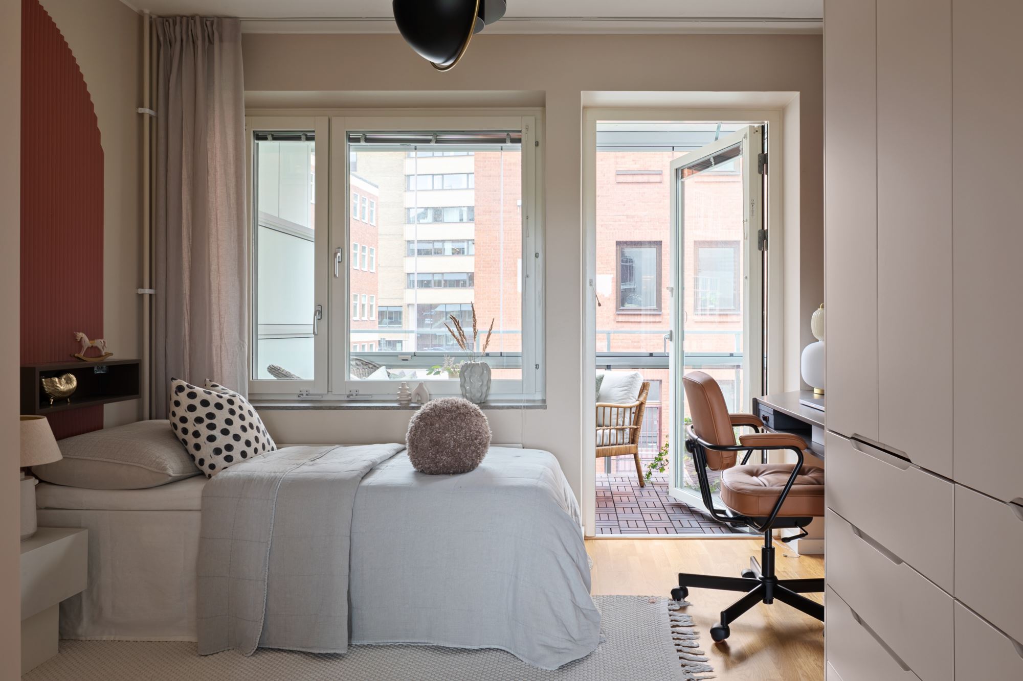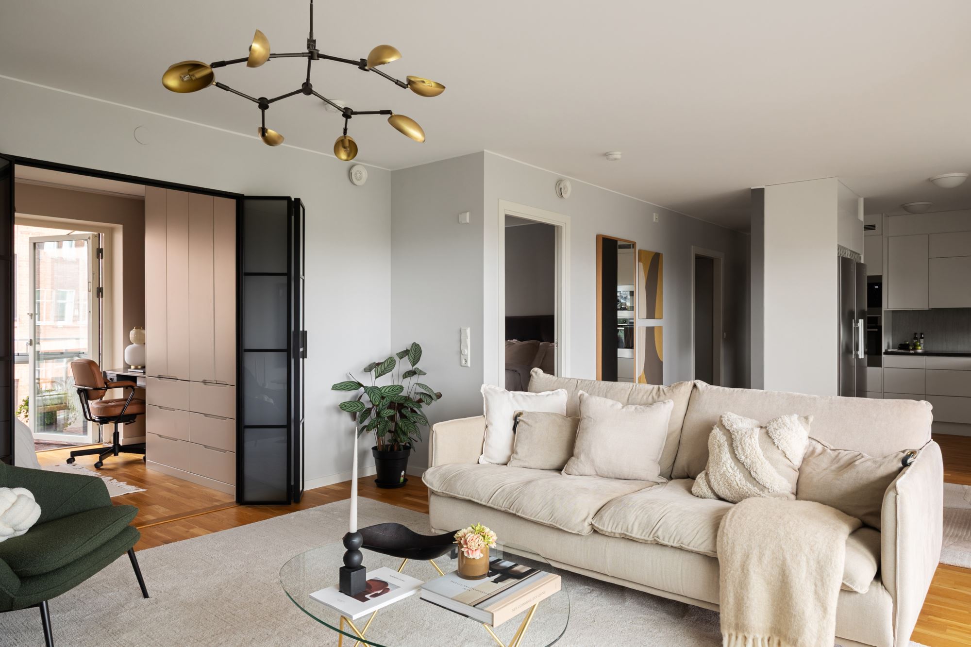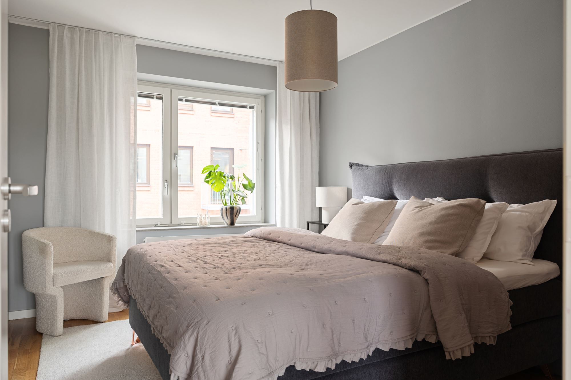 Med en genomtänkt planlösning, två generösa sovrum, gott om förvaring och ett badrum med tvättmöjligheter erbjuder bostaden ett bekvämt och harmoniskt boende – perfekt för både par, den lilla familjen eller dig som söker ett exklusivt hem med känsla av lugn och rymd.