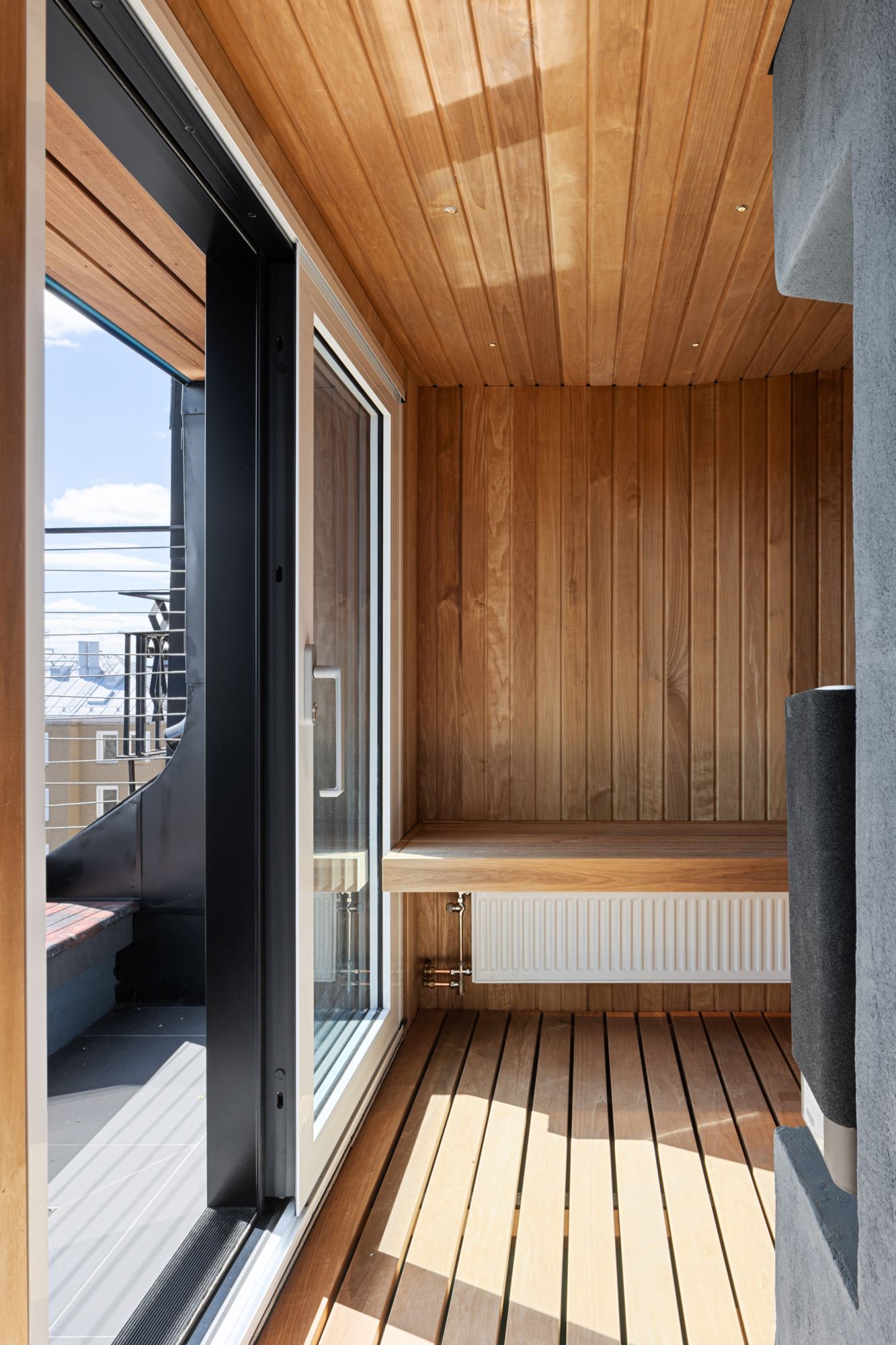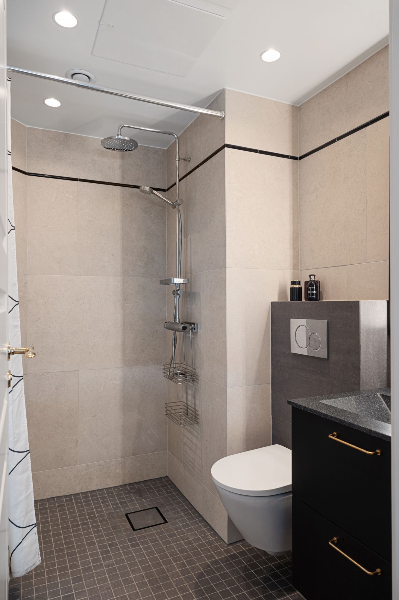 Med en taknock på ca 5 meter, imponerar bostaden direkt med sin rymd och arkitektoniska karaktär. De stora fönsterpartierna ger ett fantastiskt ljusinsläpp och en vidsträckt utsikt i flera väderstreck – från morgonens första solstrålar till kvällens gyllene sken. Den öppna planlösningen skapar en härlig känsla av luftighet, där det karaktärsfulla snedtaket och synliga takbjälkar smälter samman med moderna materialval. En öppen spis blir en naturlig samlingspunkt under årets kallare månader, och för den som söker det lilla extra erbjuder bostaden även en privat bastu – perfekt för avkoppling efter en lång dag. Bostaden rymmer dessutom generösa sociala ytor, ett fullt utrustat kök i premiumklass, exklusiva badrum och möjligheter till både hemmakontor och gästrum.