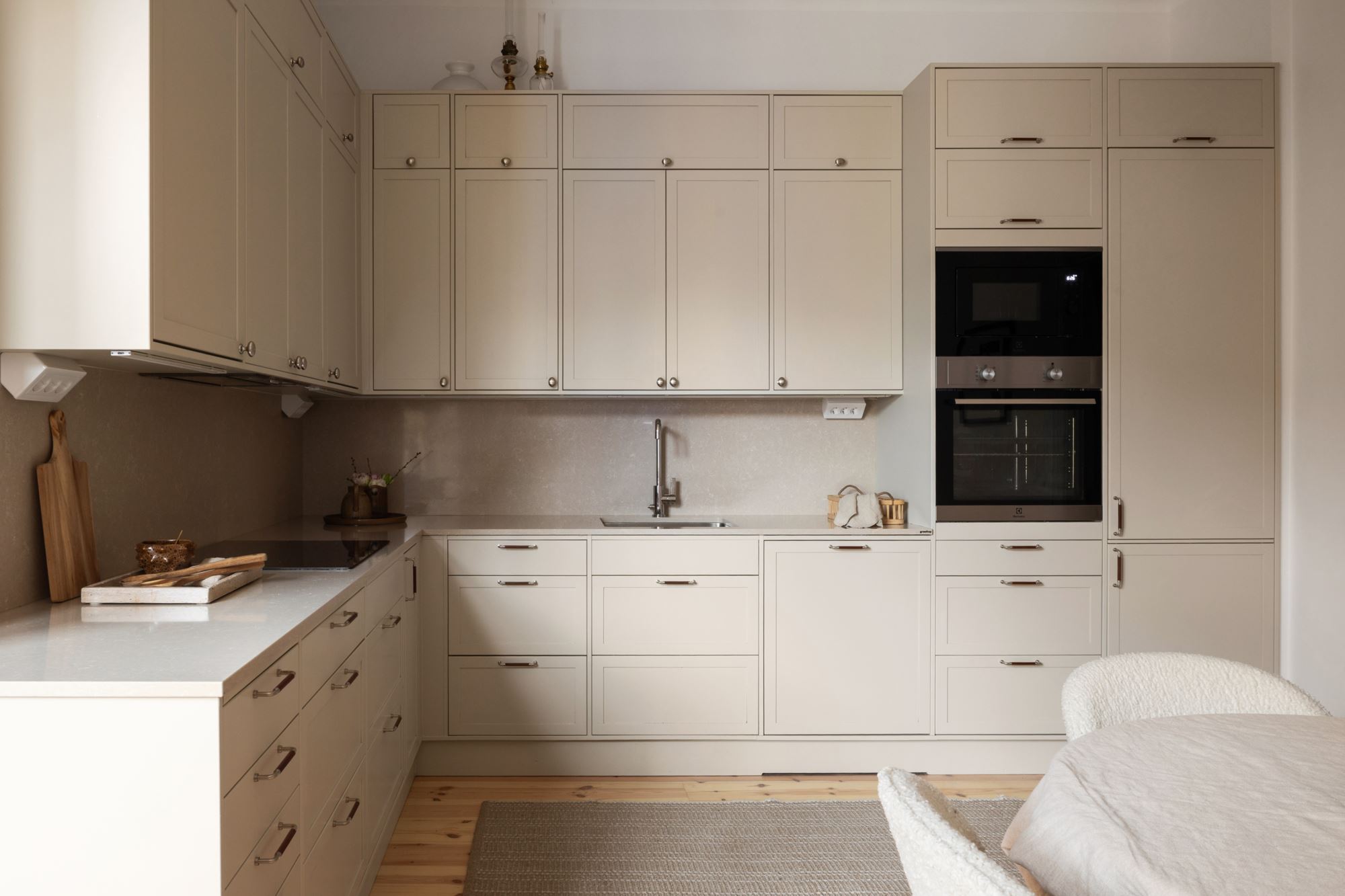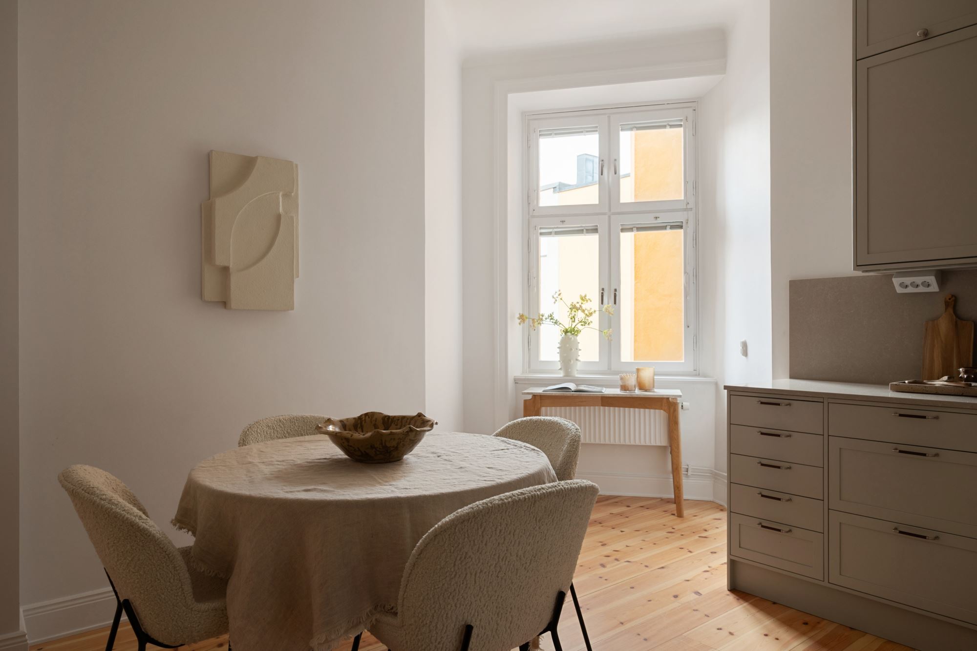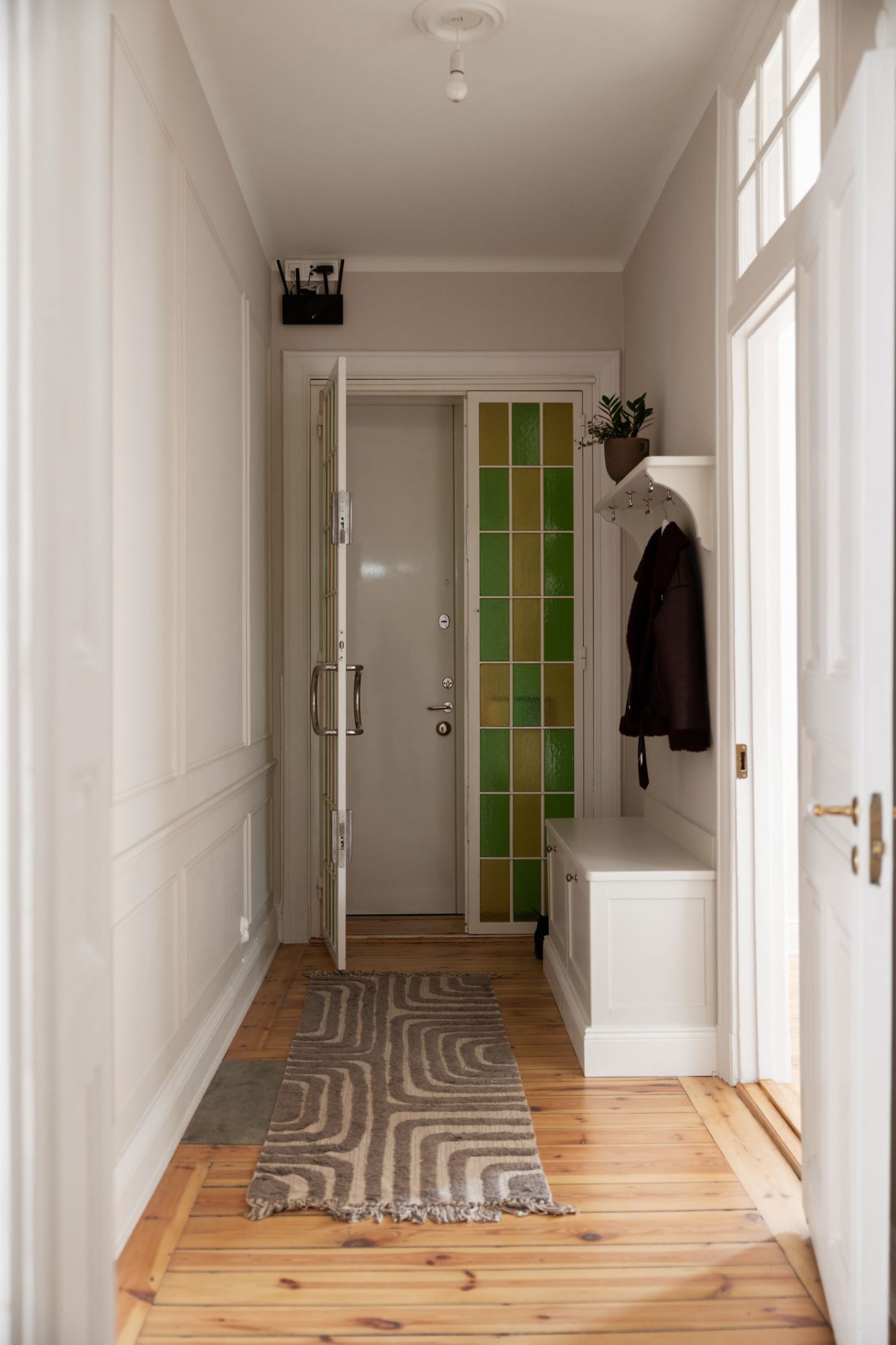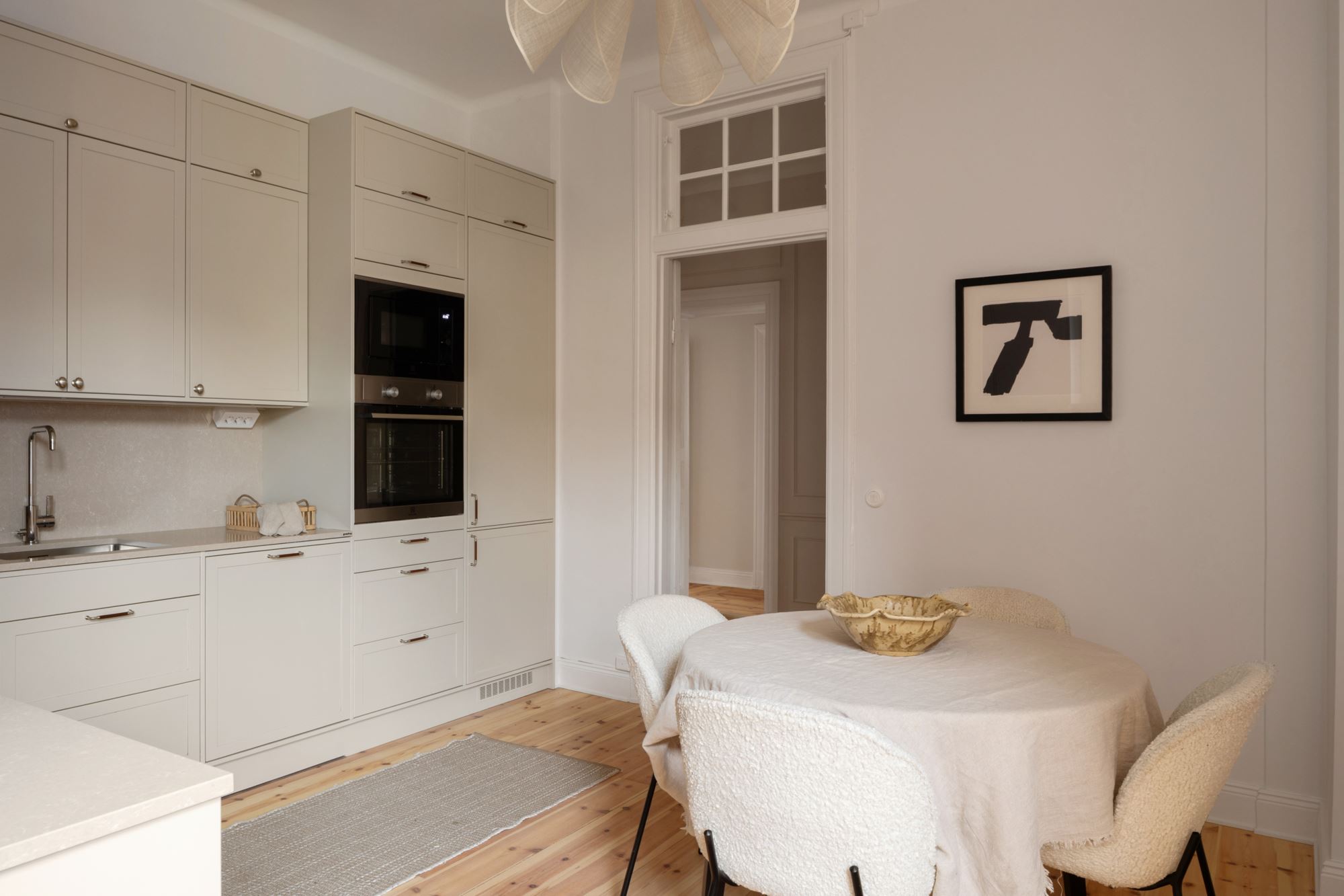 Lägenheten har nyligen genomgått en smakfull renovering och präglas av generös takhöjd, vackra stuckaturer, eleganta takrosetter, höga golvsocklar och fantastiska fönsterpartier som skapar ett härligt ljusinsläpp och en luftig atmosfär. Här möts klassisk charm och moderna materialval i en harmonisk helhet.