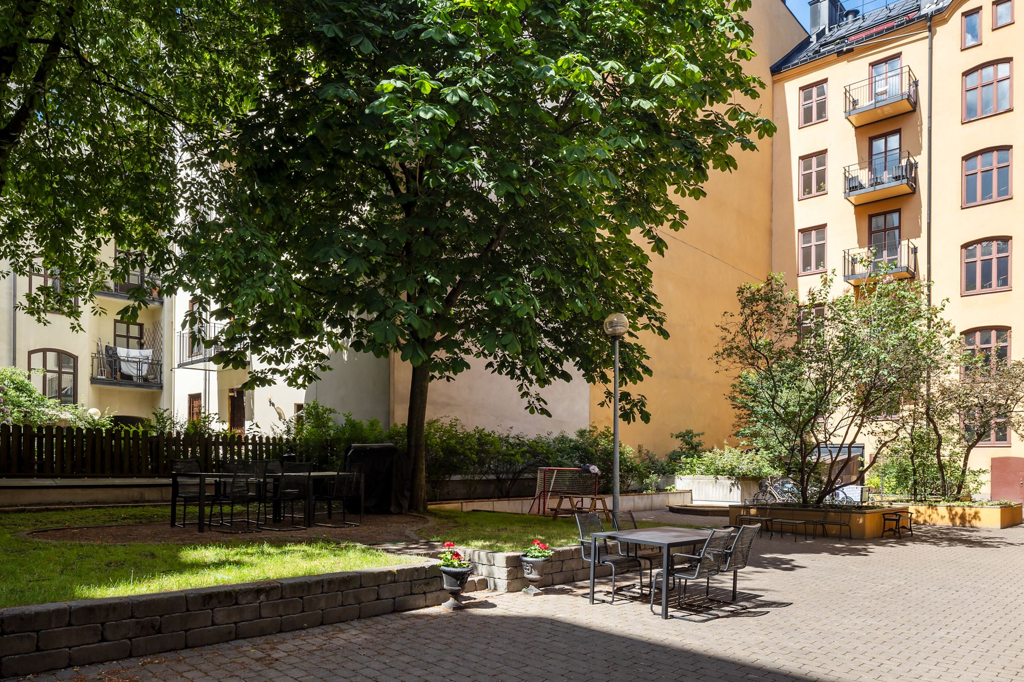 Bostaden är belägen i en mycket välskött och representativ fastighet från 1906, med en ekonomiskt stabil och helt skuldfri förening som erbjuder mycket låg månadsavgift, i dagsläget finns det ca 13 Mkr i kassan. I huset finns dessutom varmgarage – en sällsynt och eftertraktad bekvämlighet i detta attraktiva område.