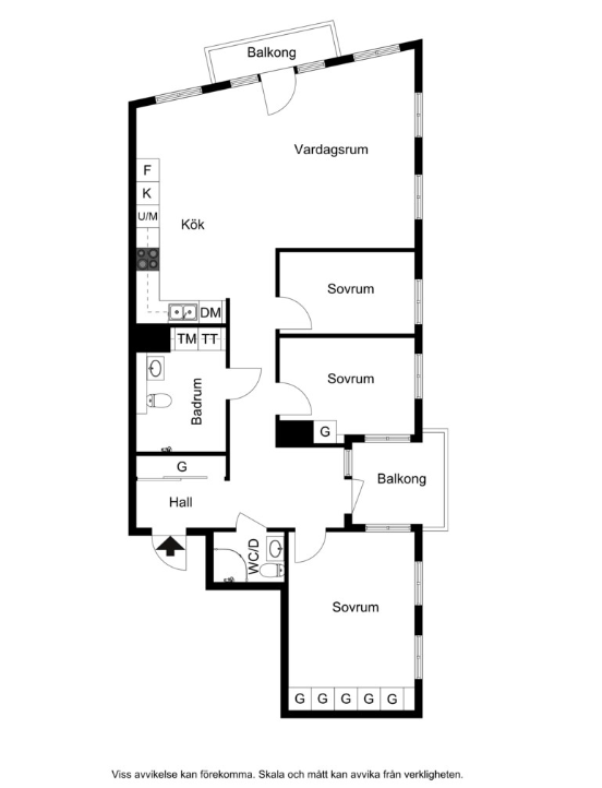 Lägenhetens fina planlösning ger ett enkelt flyt mellan de sociala ytorna där kök och vardagsrum är bostadens sociala mittpunkt, medans sovrummen ligger avskilda och ostörda. Här får ni funktion, lugn och rymd i ett. Det rymliga vardagsrummet erbjuder gott om plats för att skapa en bekväm sällskaps yta och rymmer en stilfull sittgrupp och underhållnings utrustning. Stora fönster sträcker sig från golv till tak och släpper in naturligt ljus samtidigt som de ger tillgång balkongen. Badrummen är stilrena och elegant inredda med moderna armaturer och högkvalitativa materialval.