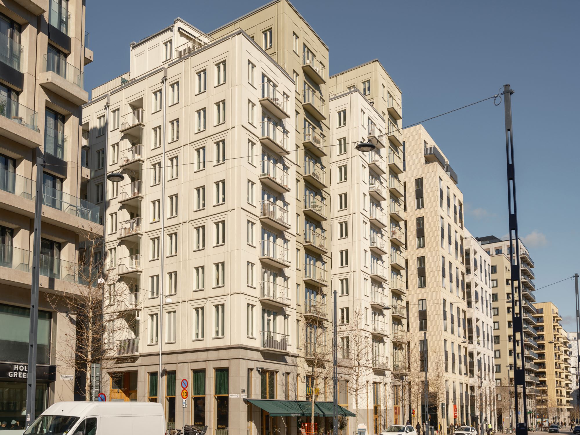 Bostadsrättsföreningen består av 205 stilrena lägenheter, de flesta med fina balkonger eller härliga terrasser. Lägenheterna färdigställdes 2018 och 2019.