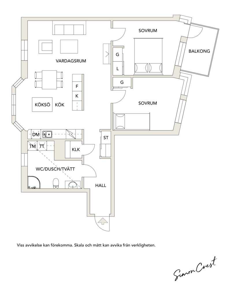 Bostaden disponeras över två rymliga sovrum med goda förvaringsmöjligheter, vilket gör den idealisk för såväl paret som den mindre familjen. Det luftiga vardagsrummet bjuder in till både avkoppling och sociala tillställningar.