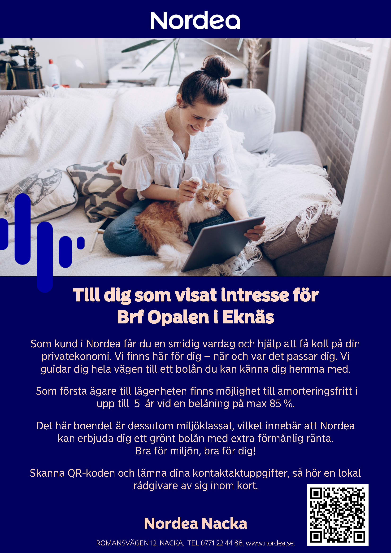 Studenterbjudande i samarbete med Mecenat i BRF Opalen i Eknäs, Nacka